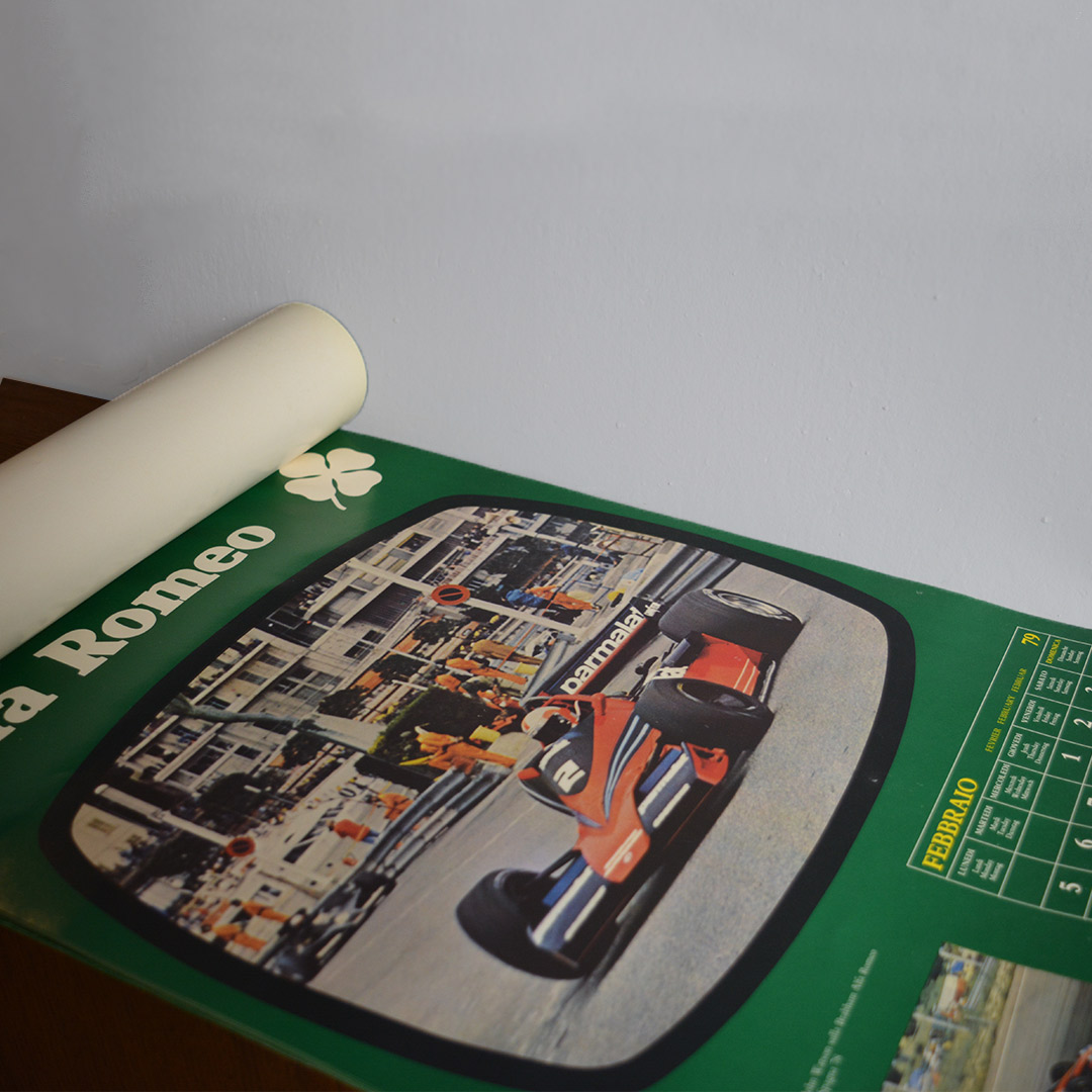 Alfa Romeo calendar 1979. Light wear consistent with age and use, Patina consistent with age and use.