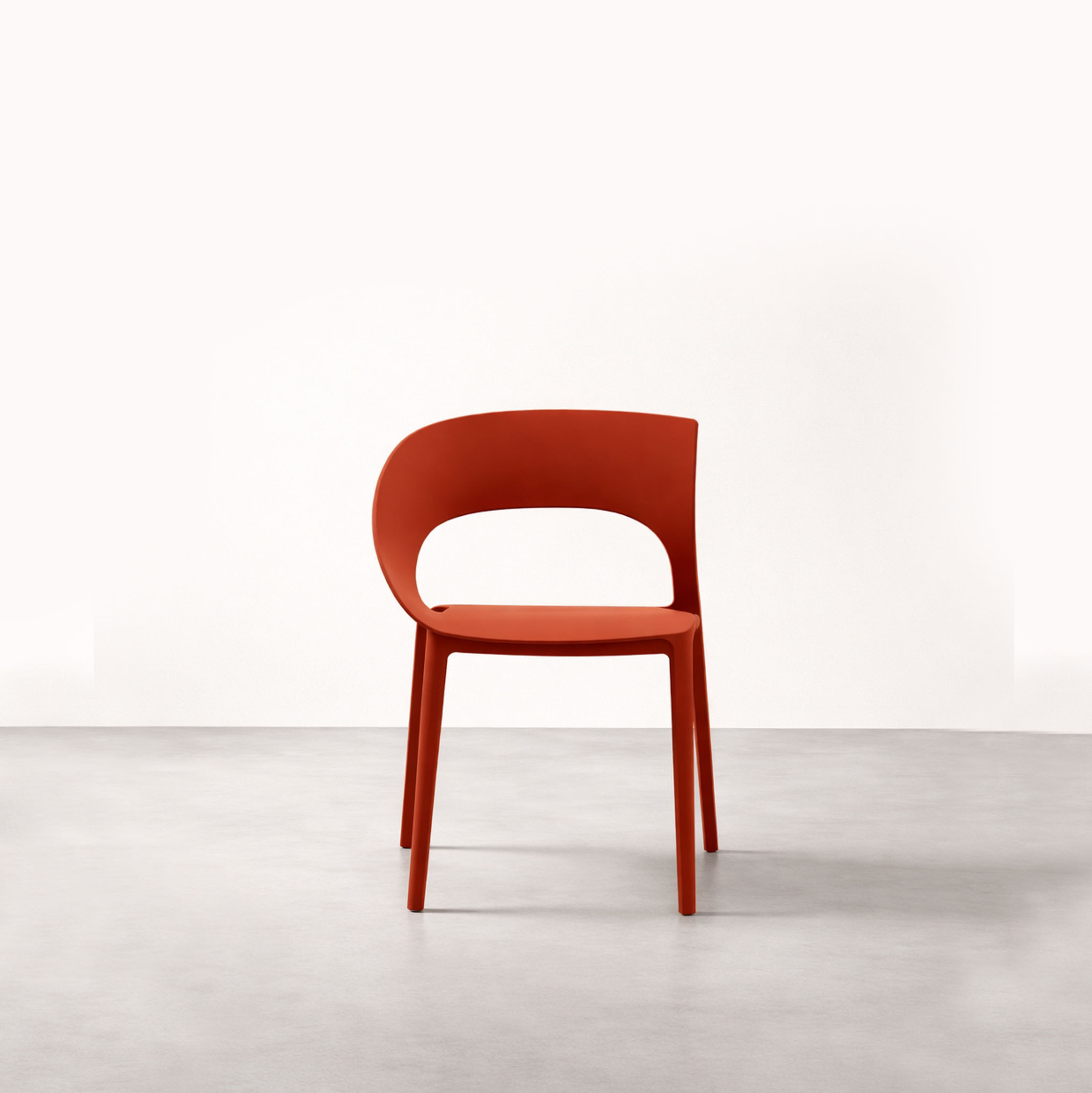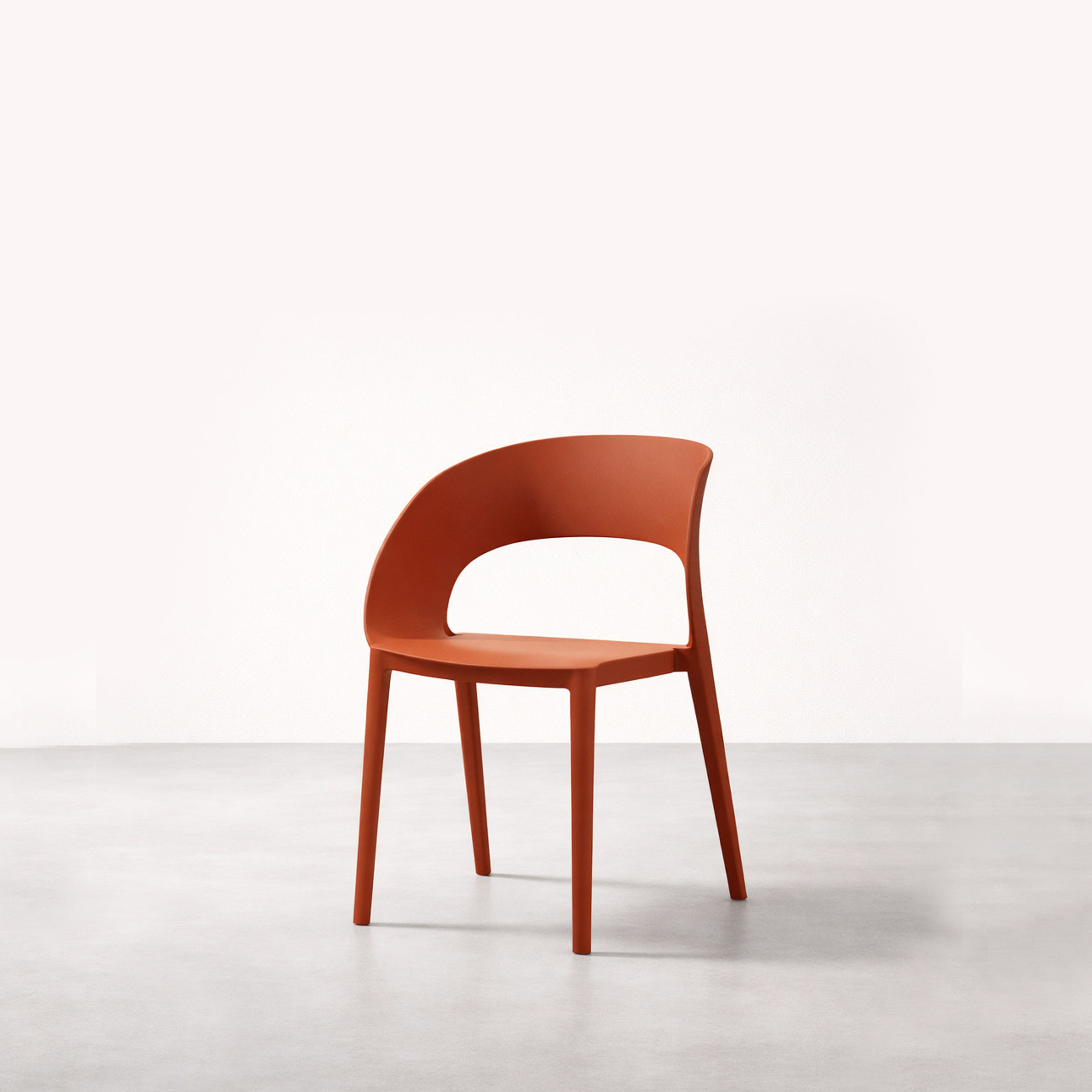The Cut Edge Chair – brick red edition is defined by its precise curved cut-out and clean architectural form. Crafted from durable PP (polypropylene), it is lightweight, resistant, and designed for everyday use. Fully stackable, it adapts effortlessly to both residential and professional environments.