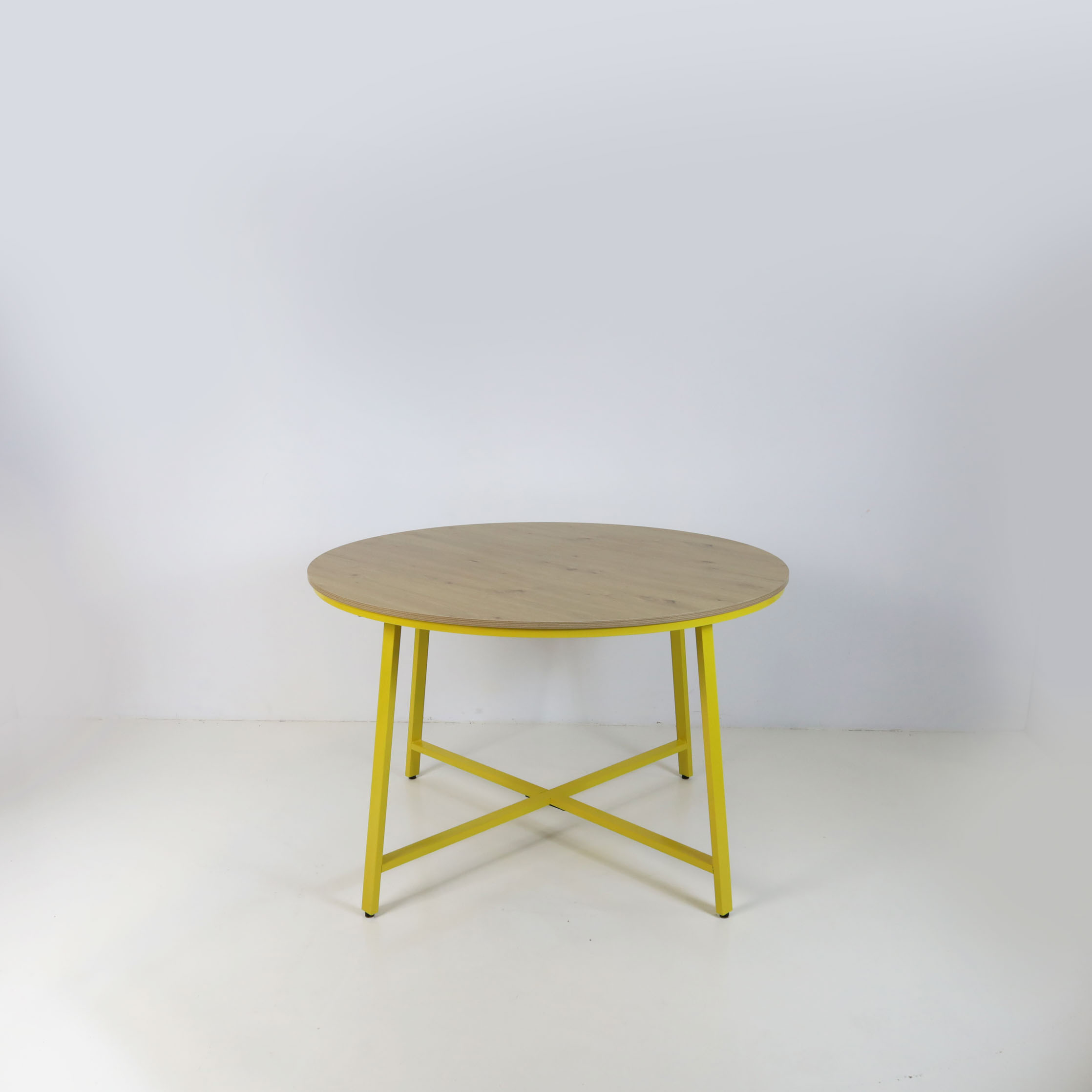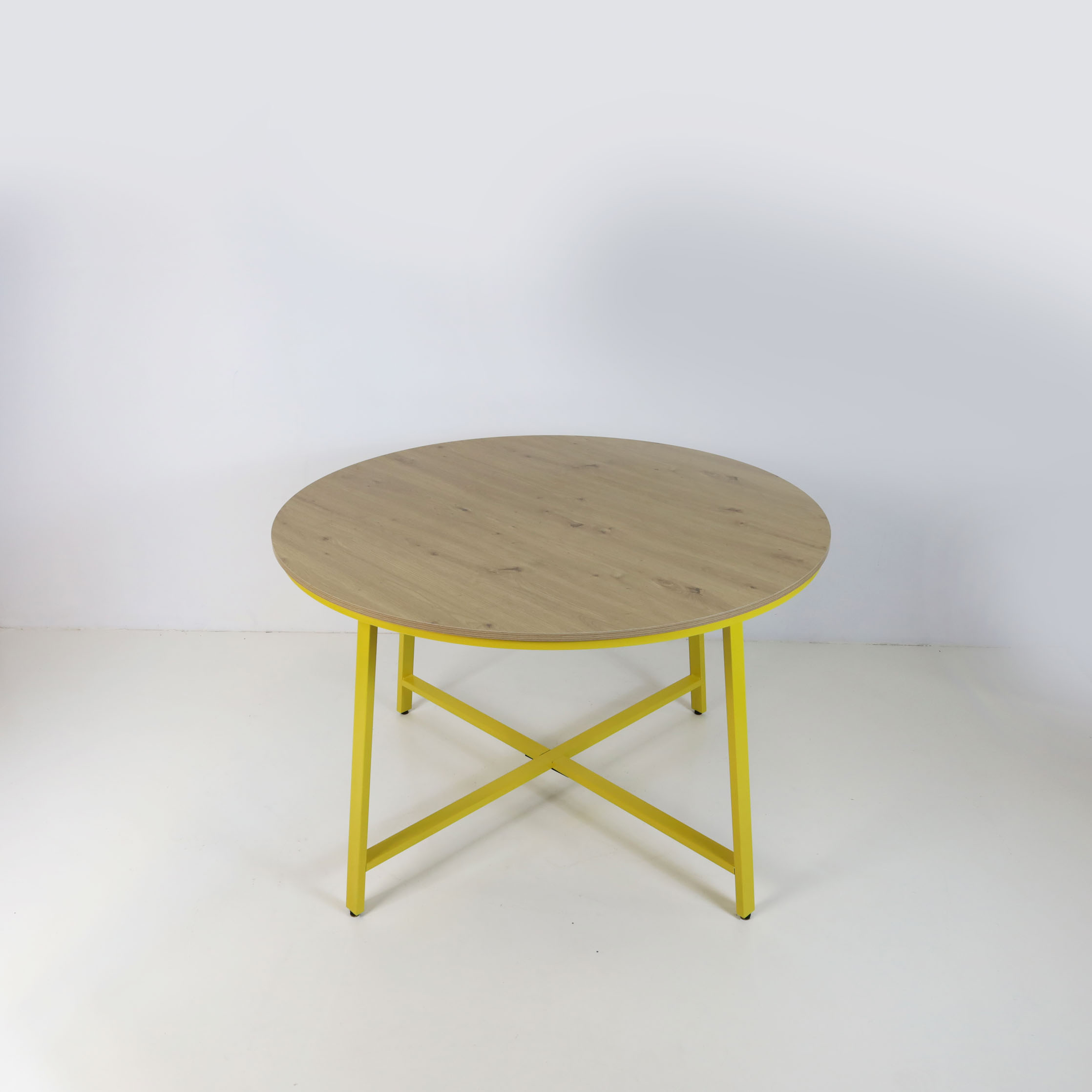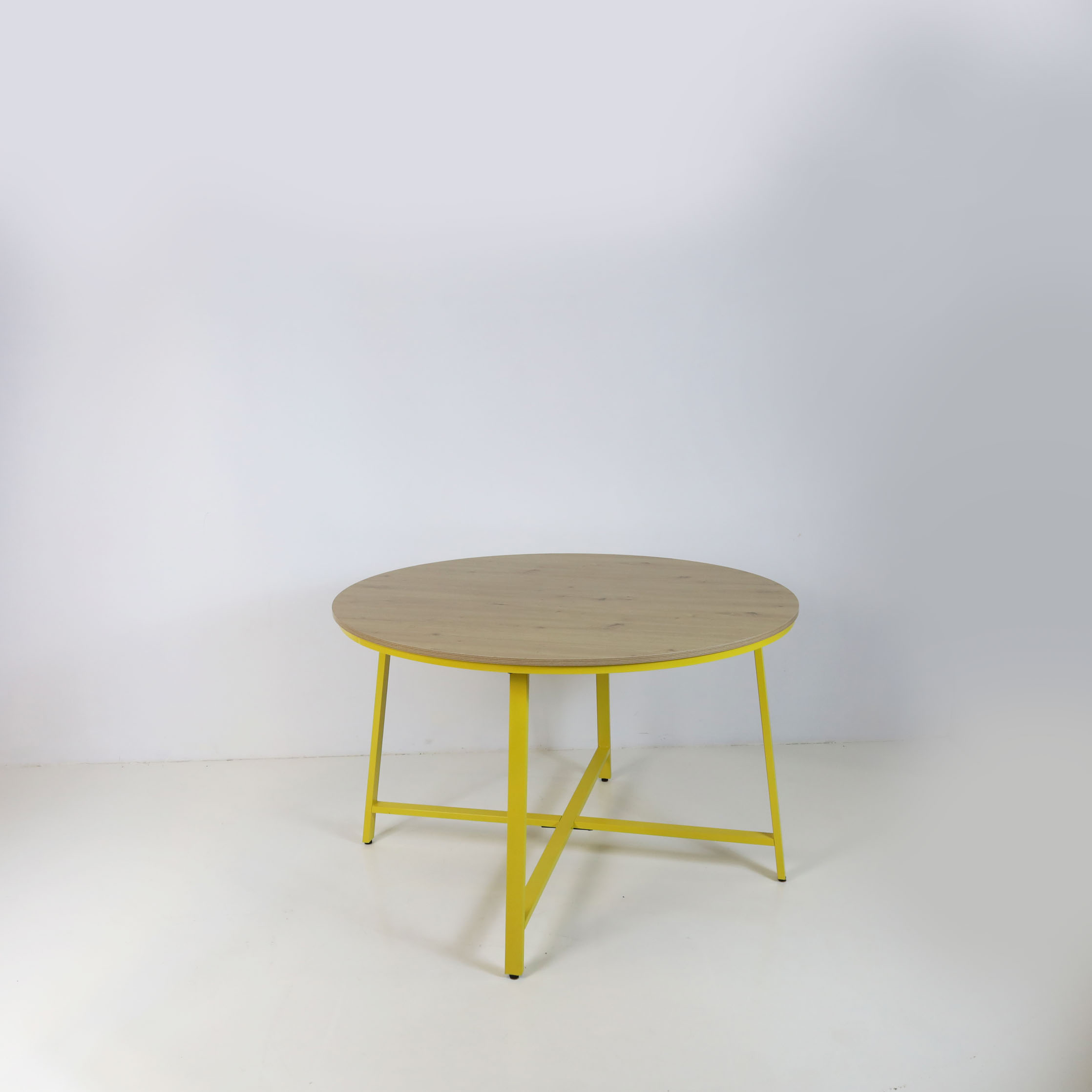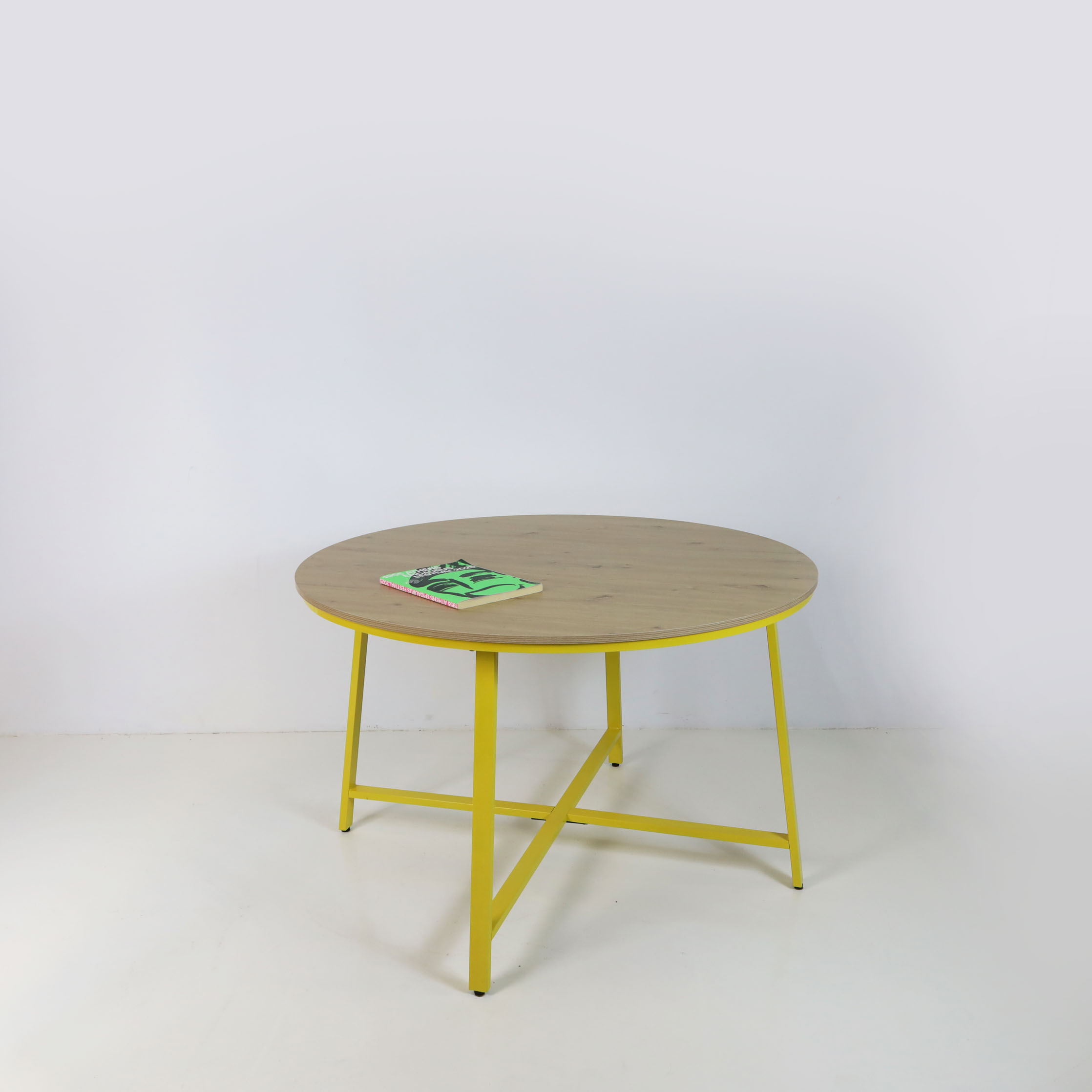 A fresh redesign by the Modernon Team, this round dining table combines a natural wood top with a bold, Traffic Yellow metal base. Its clean silhouette and sturdy construction make it perfect for dining rooms, creative spaces, or boutique interiors. Redesigned and finished by our in-house team to meet contemporary needs, while keeping a playful, vibrant character.