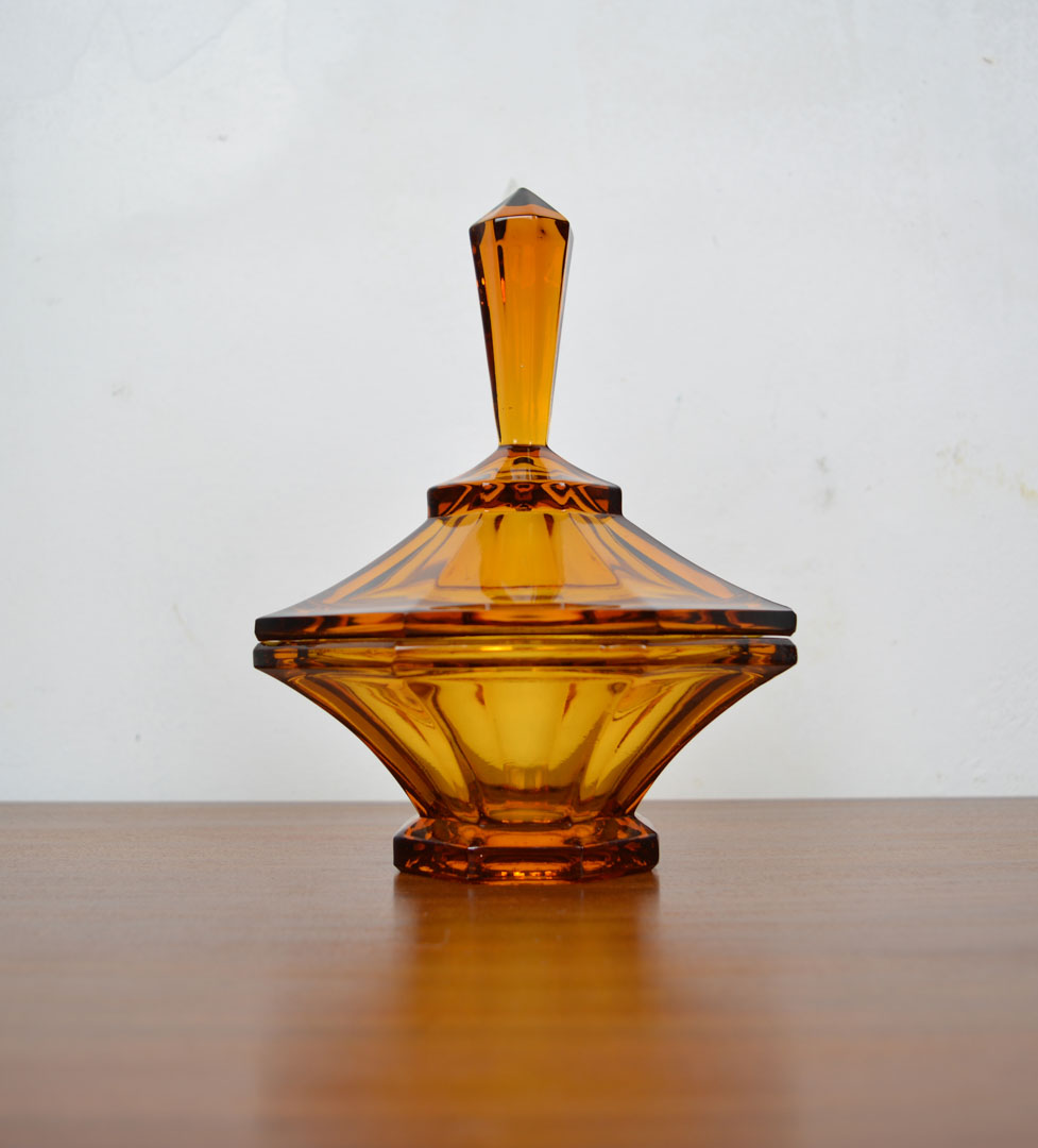 Candy jar in high quality brown transparent glass. Art Deco. Excellent vintage condition. Professionally cleaned.