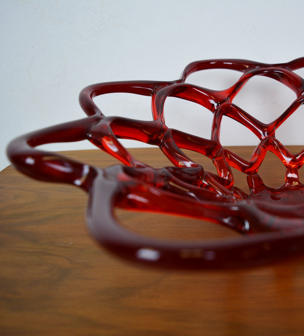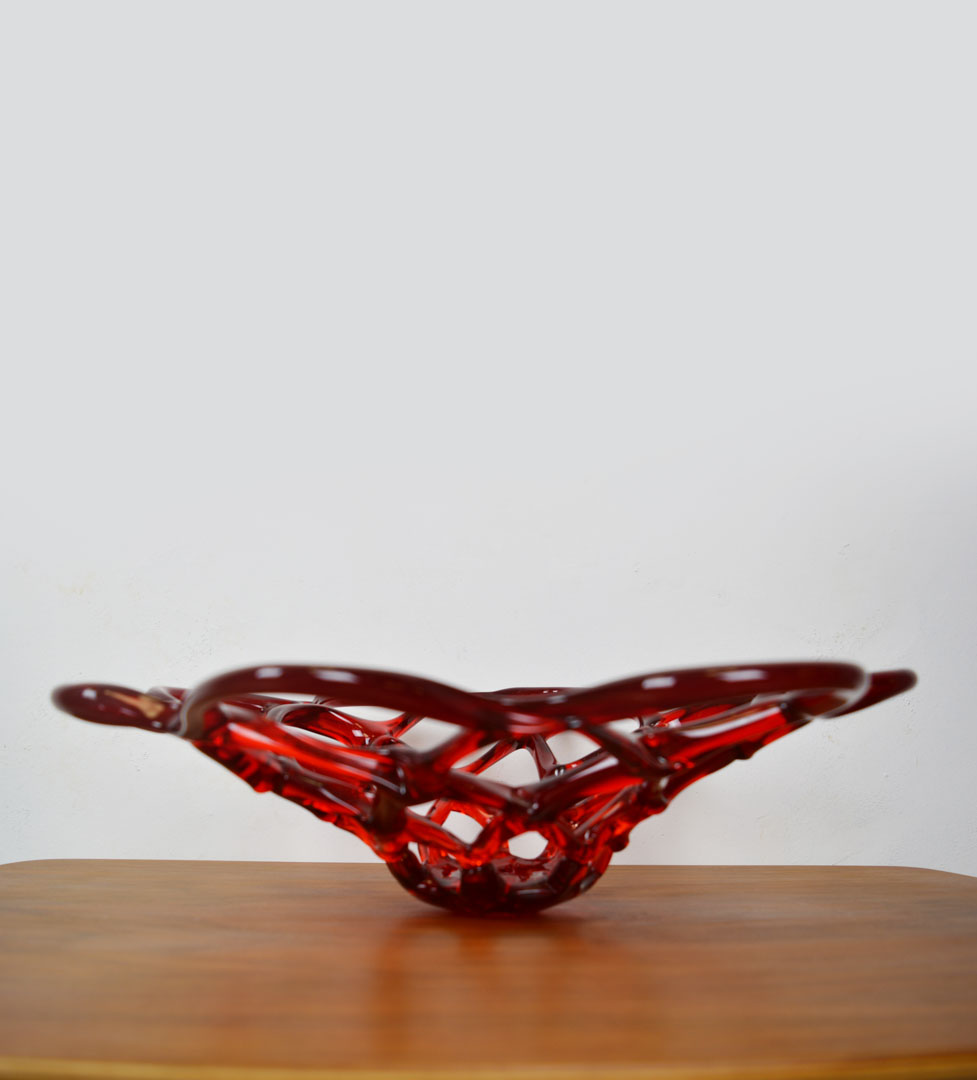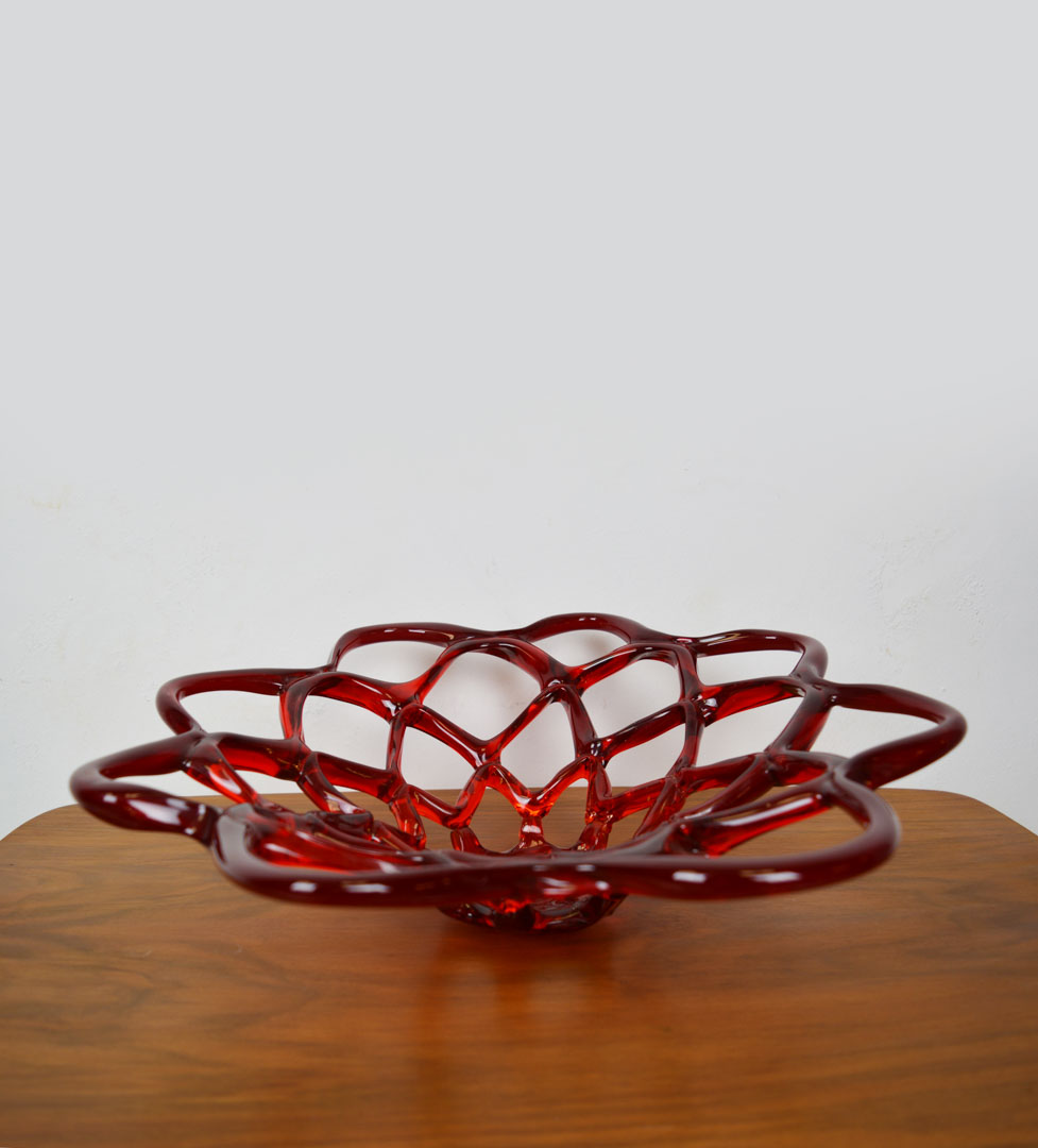 Large red murano bowl web design, made in Italy. Hand- Mouth blown. In excellent condition. – This item has no defects.