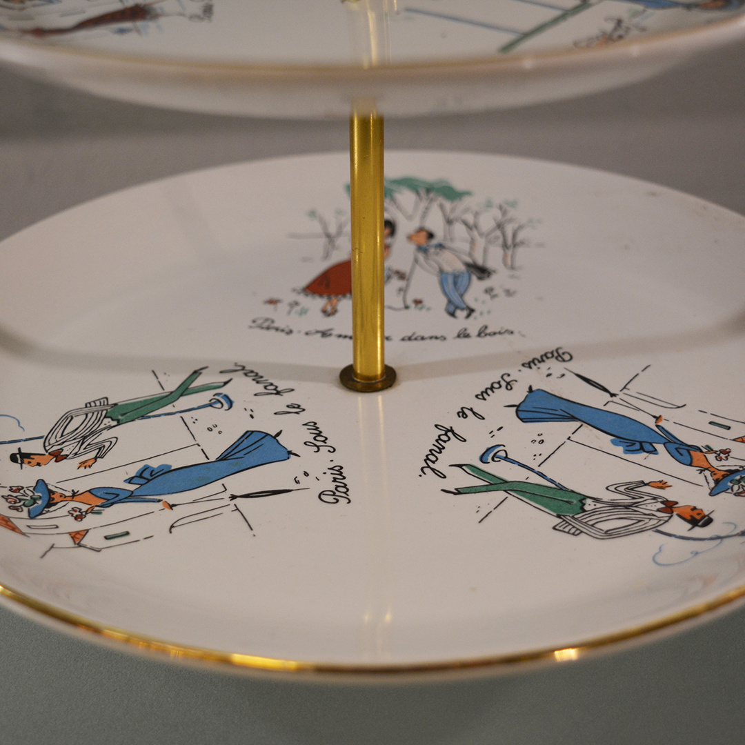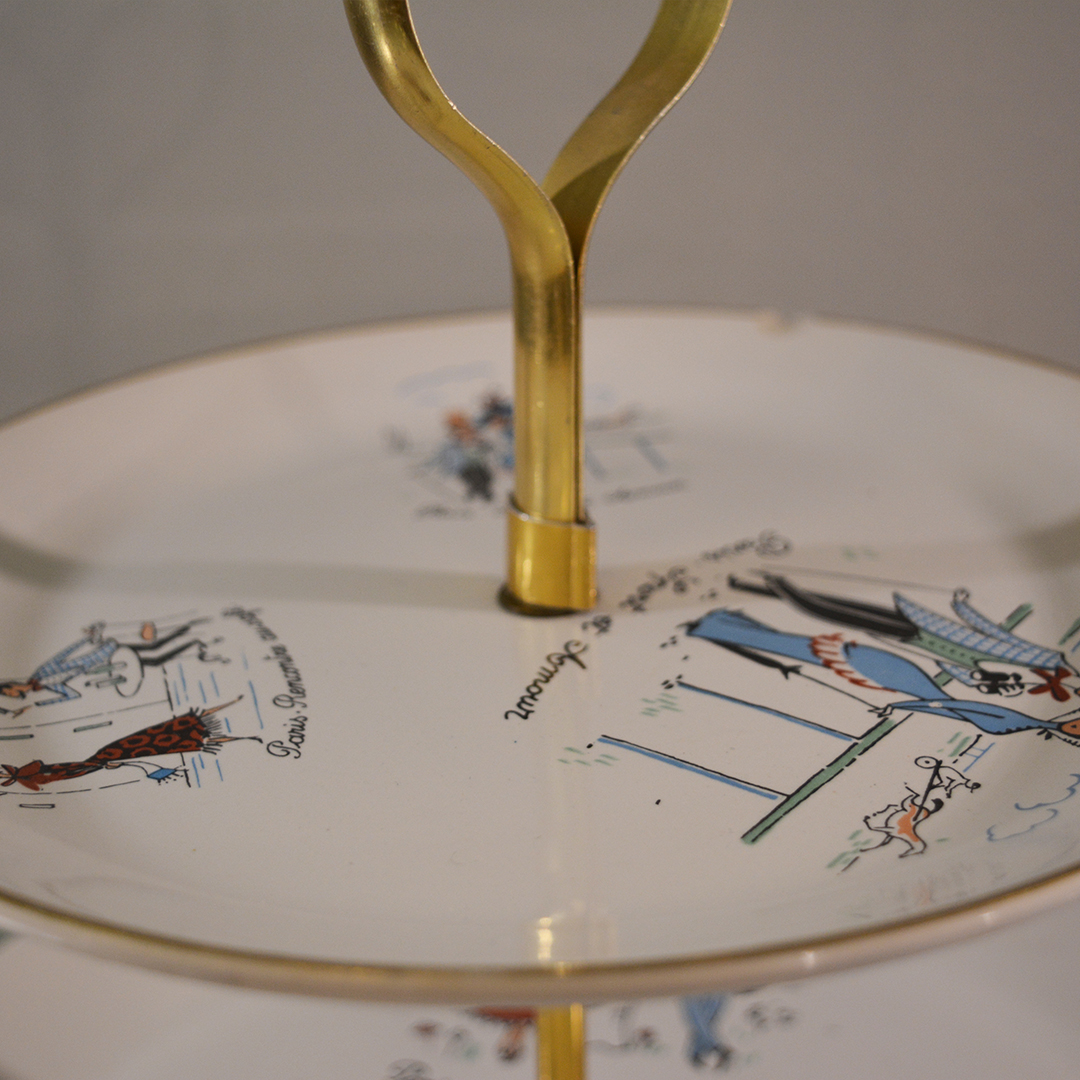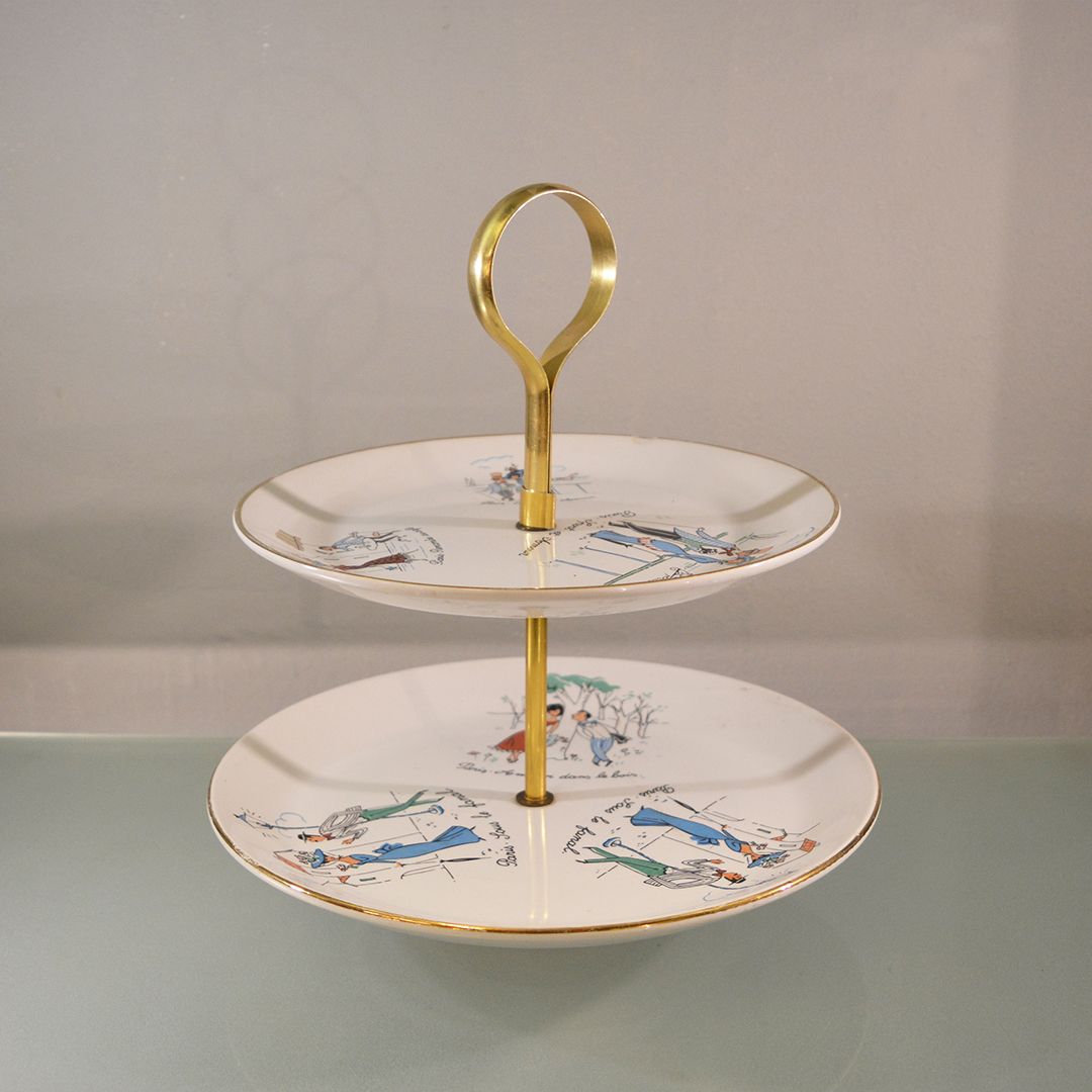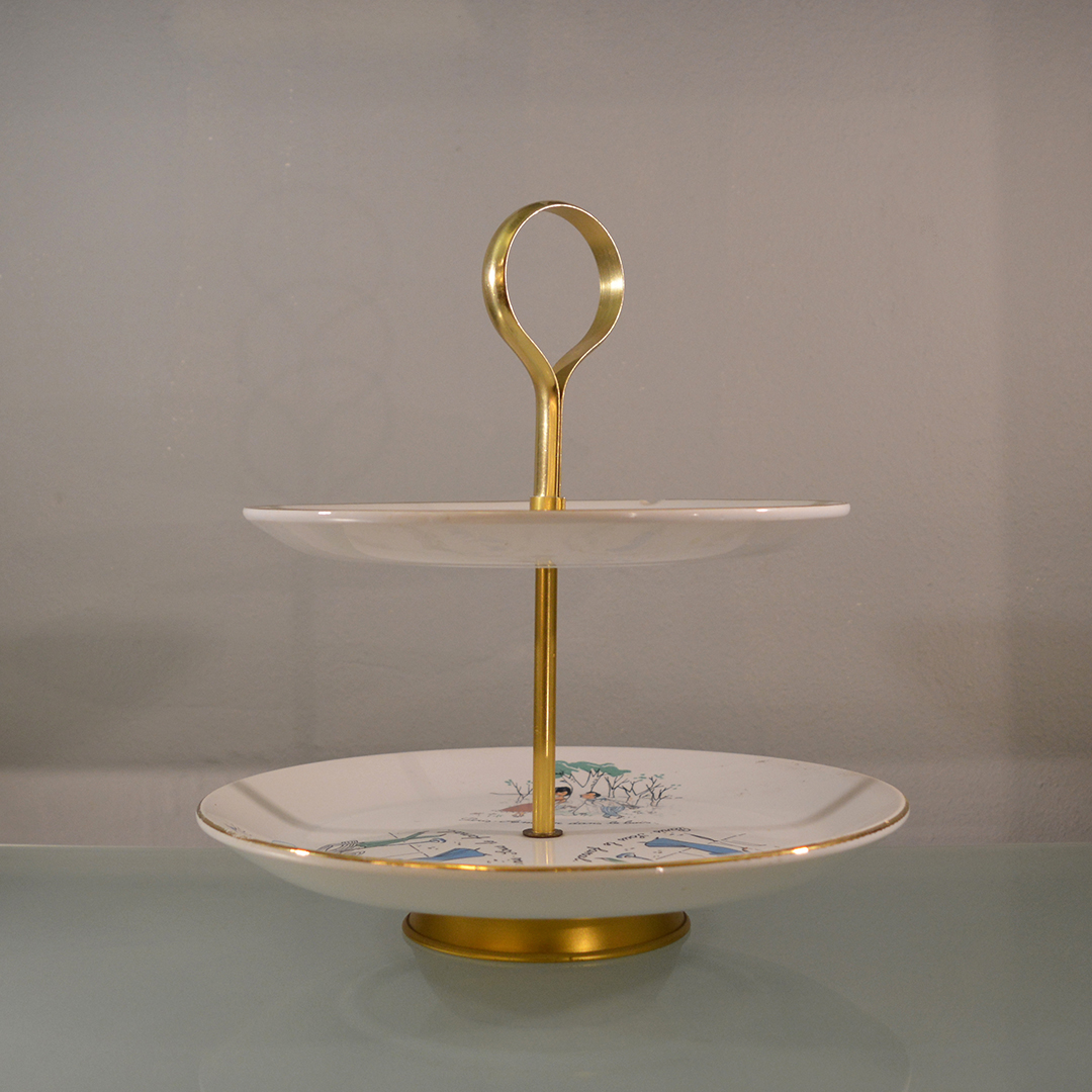 Porcelain Mid Century 2 level service plate, with gold thread border. Made in Greece, Keramicos. Light wear consistent with age and use, Patina consistent with age and use.
