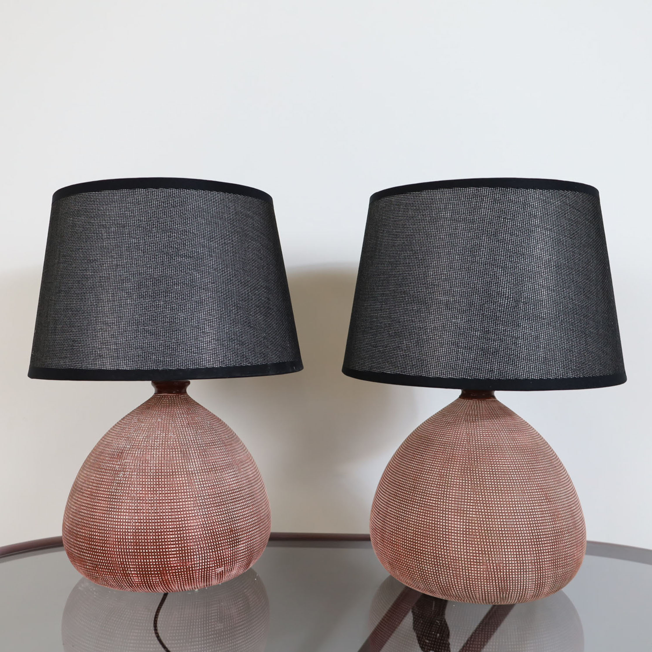 60’s table lamp. It features a ceramic base. Made in Greece by Keramicos. Fully remanufactured, with new lampshade (based on the original form), LED technology and European Plug. In excellent condition — This vintage item has no defects.