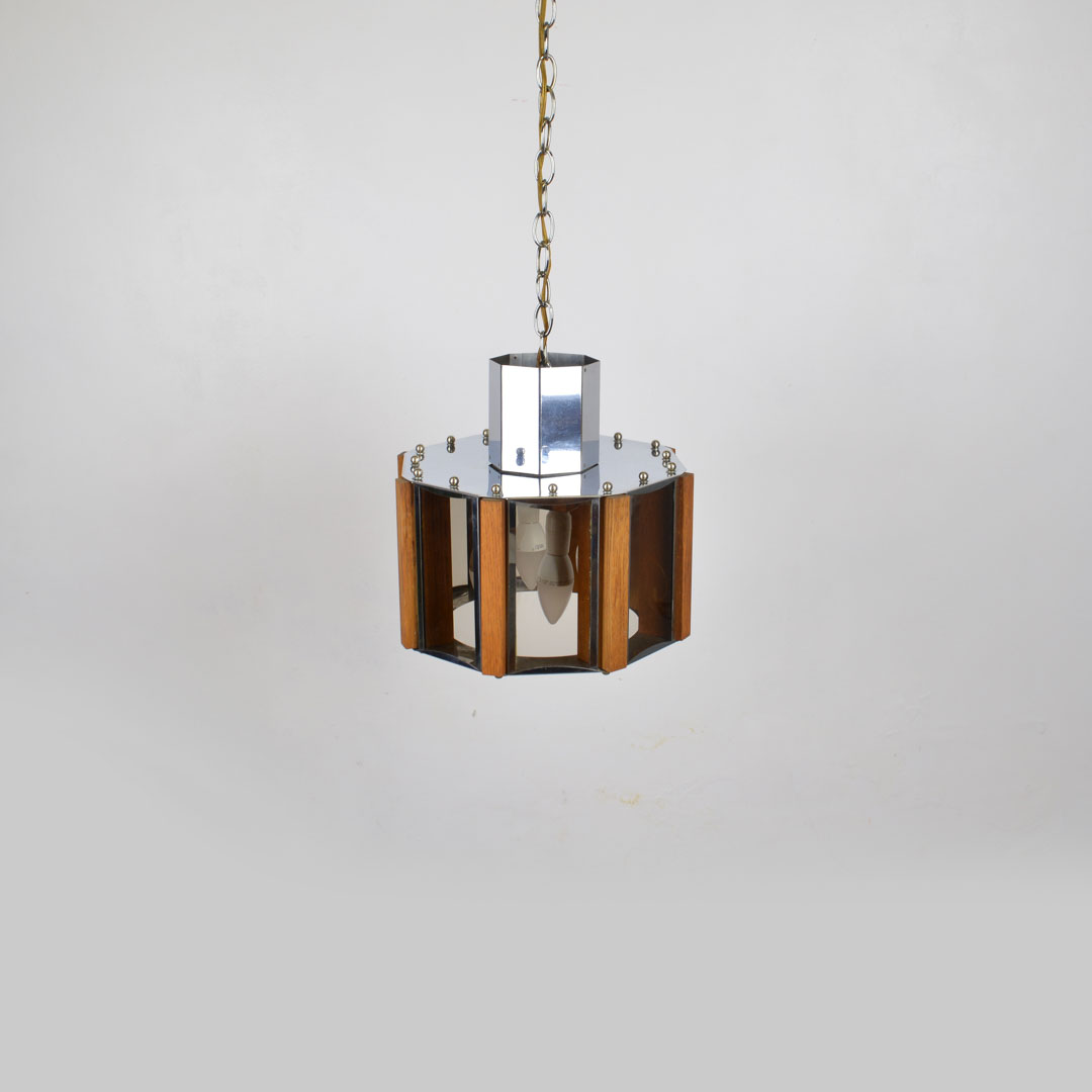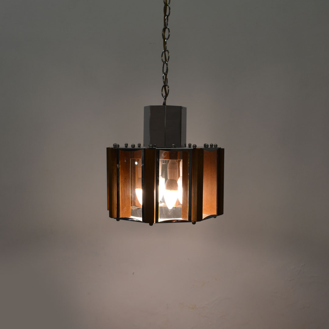 Mid Century Modern Glass & Wood Pendant Light