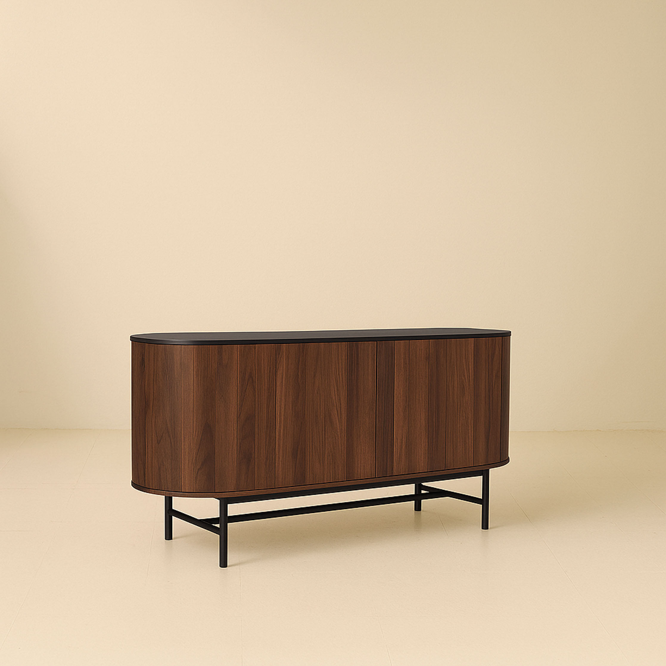 €590.00€480.00This contemporary sideboard combines a modern vertical lined front top based on a metallic base. Featuring two spacious double-door cabinets supported by crescendo shaped metallic pulls. This piece has a minimalist design that complements modern interiors while offering both functionality and elegance. Perfect for living rooms, dining areas, or entryways.