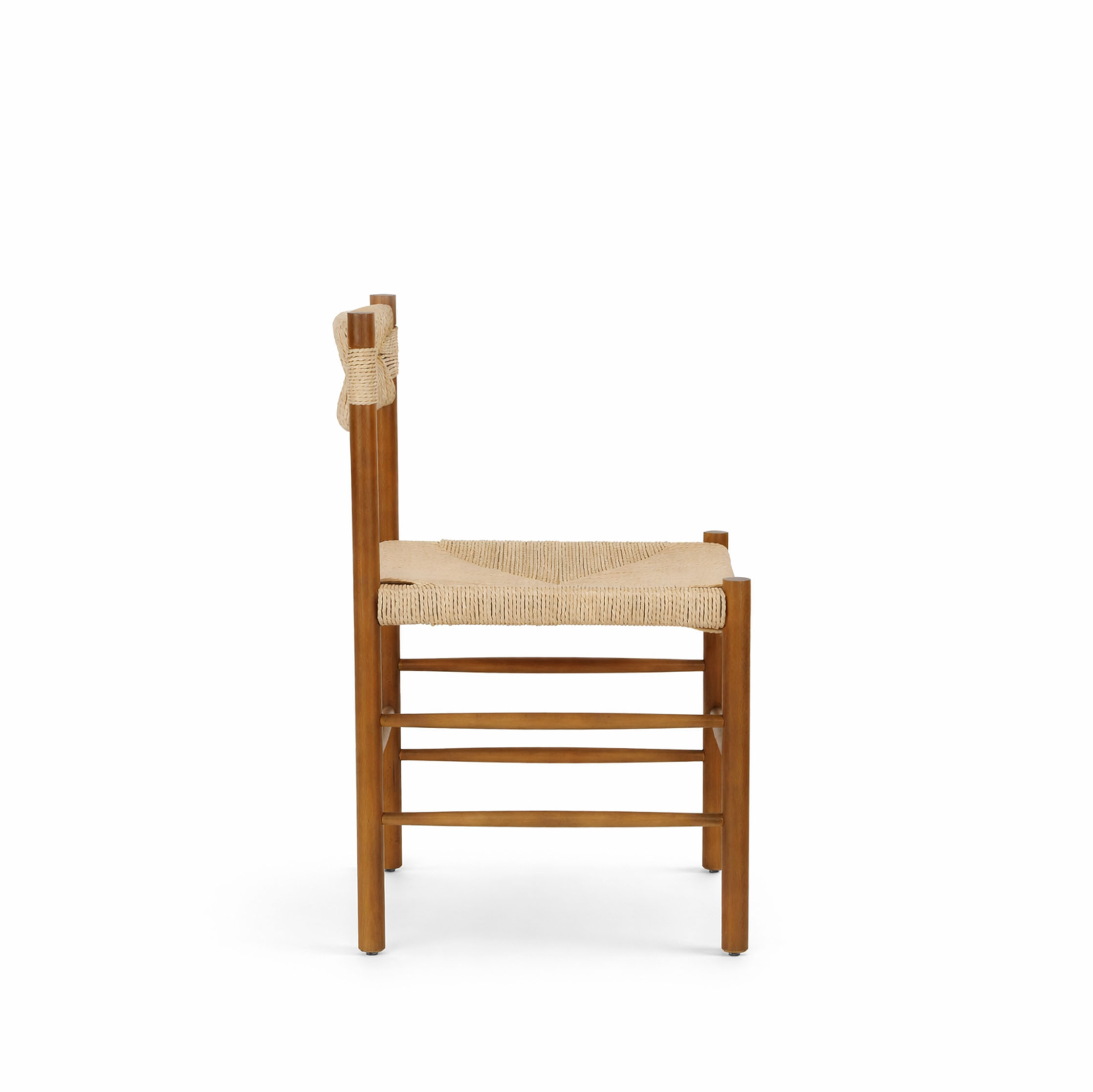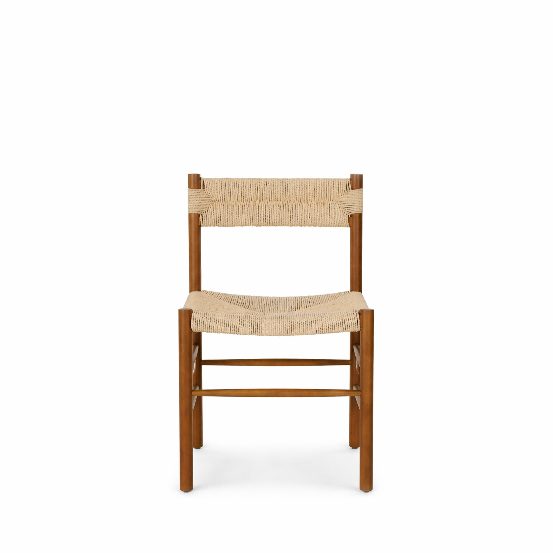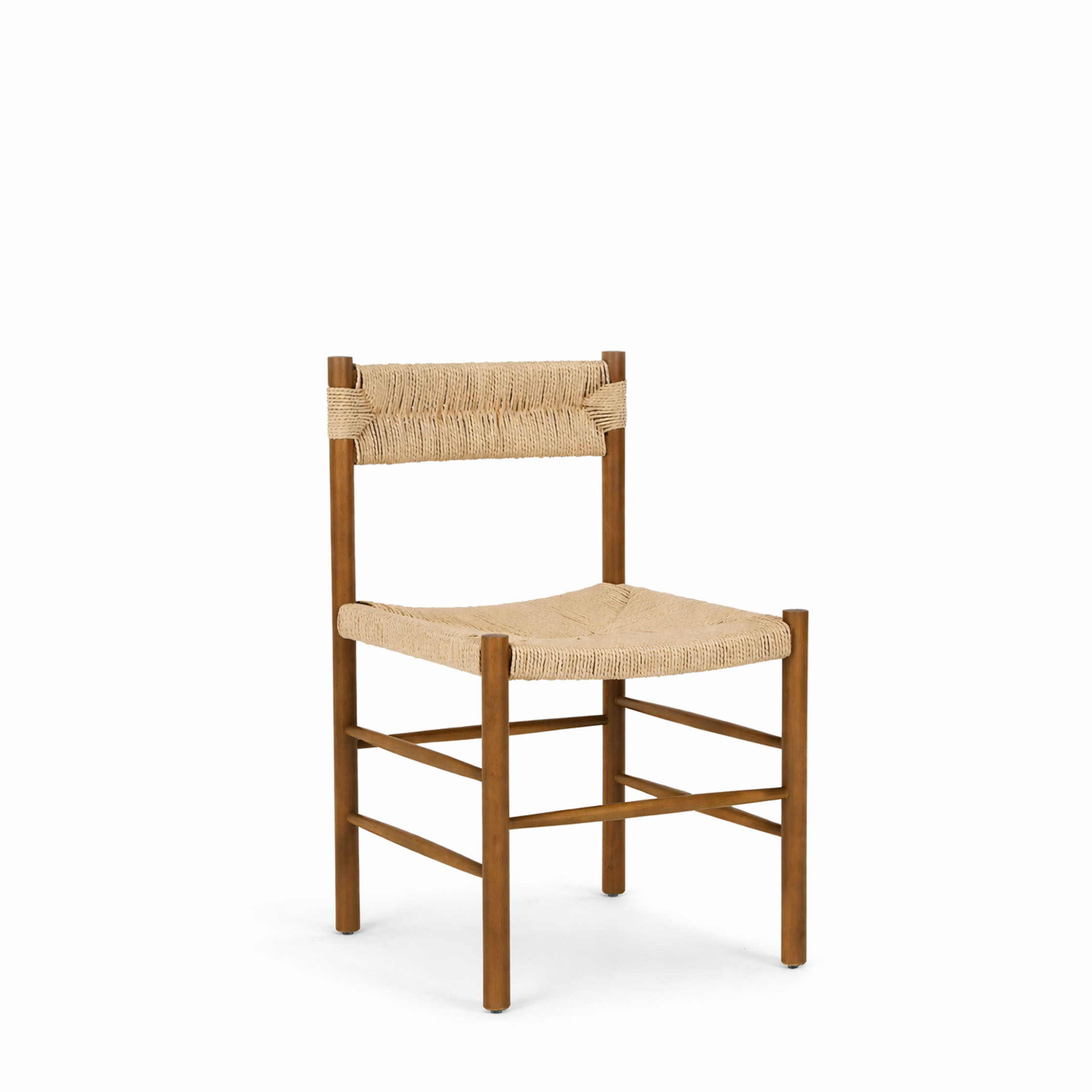 A refined, handcrafted chair that blends natural texture with clean structure. Featuring a solid wooden frame in a warm tone and a handwoven rope seat and backrest, it offers both comfort and visual lightness. The slightly curved seat enhances ergonomics, while the minimal silhouette makes it ideal for modern, rustic, or Mediterranean interiors. A timeless piece that brings authenticity and warmth into any space.