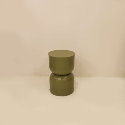 A sculptural side table in olive green with soft, rounded double-curve form. Minimal and contemporary, it works as side table, or decorative accent. Its smooth silhouette and modern color make it a versatile addition to any stylish interior.