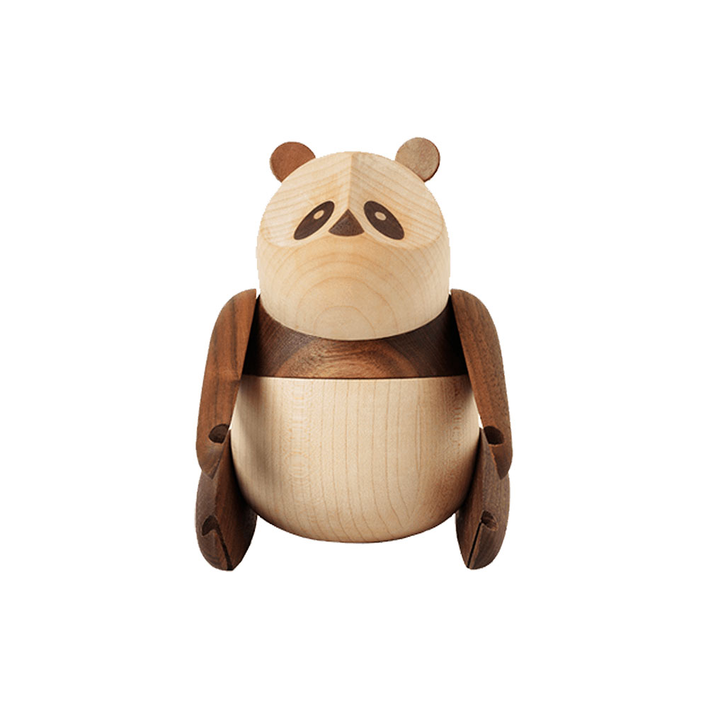 On the occasion of the arrival of two giant pandas, the Copenhagen Zoo asked BIG-Bjarke Ingels Group to create a home for them. The configuration seeks to create ideal mating conditions. The layout mimics the yin-yang symbol that in Chinese philosophy represents opposite but balanced forces within a circle. The wooden figure Panda, designed by BIG, is available in two sizes: small and large. The upper body rotates on the lower body and the arms and legs are movable.