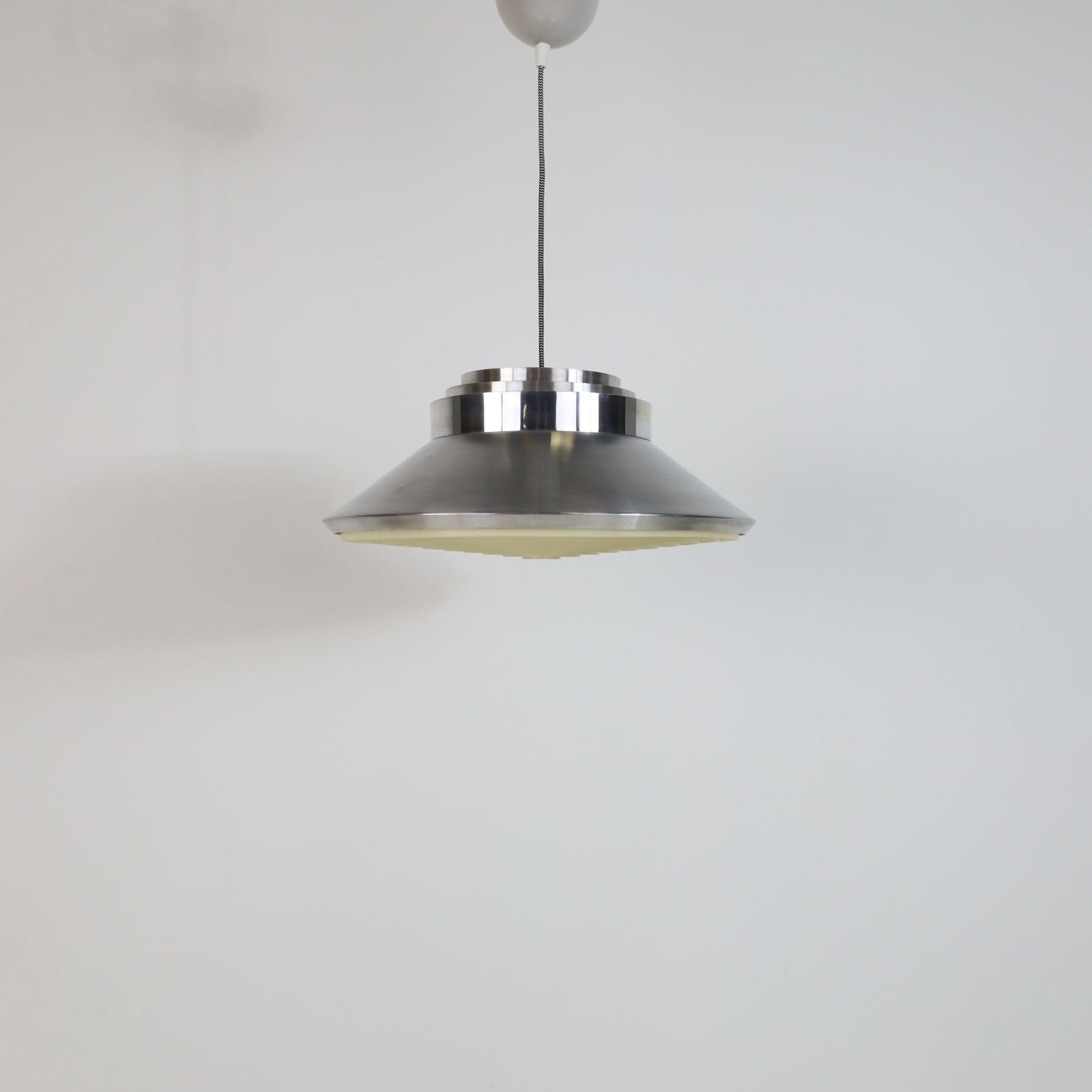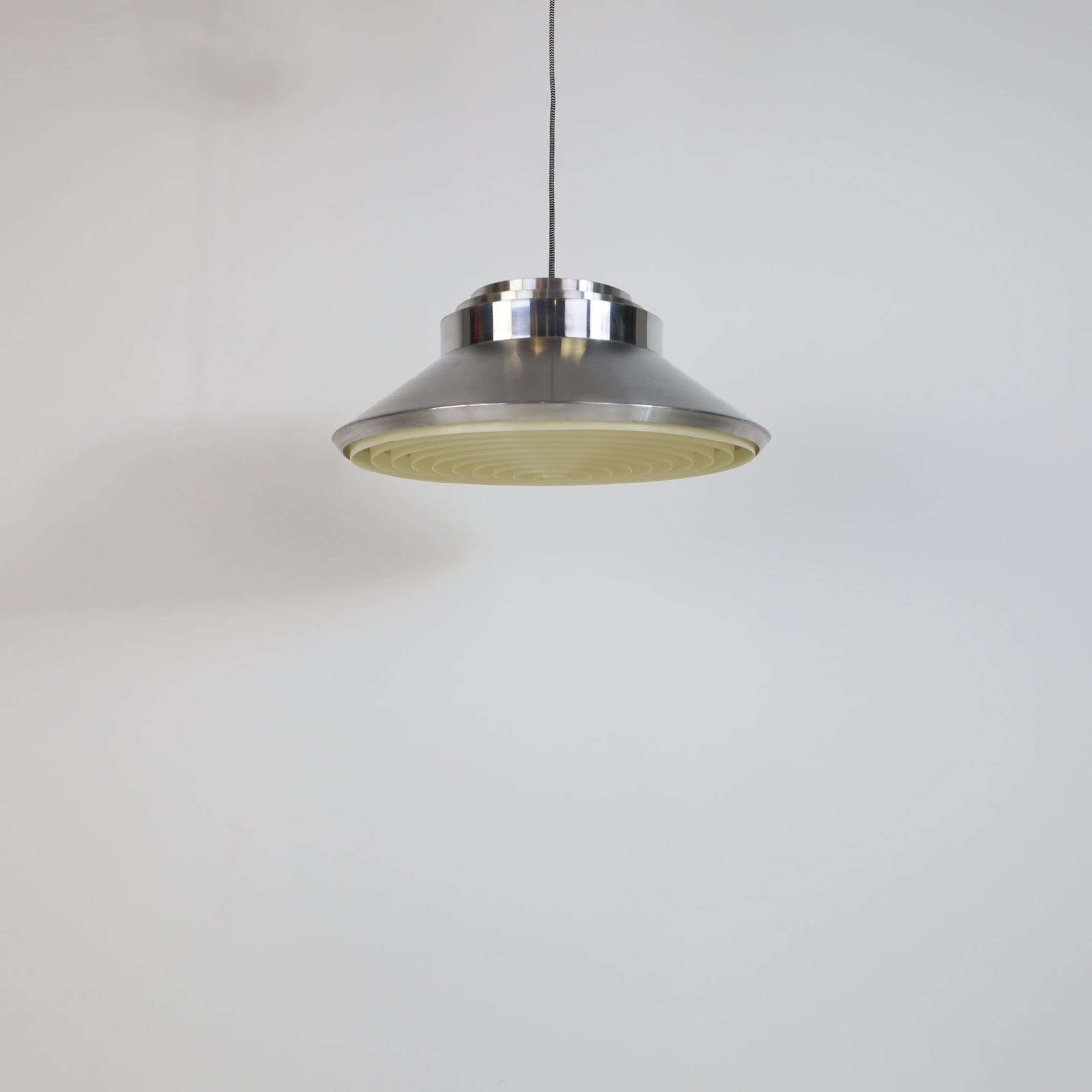 €740.00€580.00Scandinavian metallic ceiling lamp. Fully remanufactured with LED technology, European Plug and pull down cable. —In excellent condition. This vintage item has no defects.