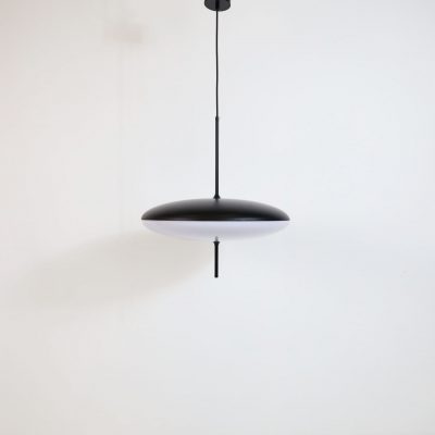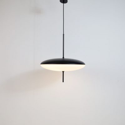 €580.00€390.00A timeless masterpiece of lightness and elegance. This Minimalist luminaire pendant lamp is a beautiful contemporary piece. Three LED lamps make the pendant light bright enough for larger spaces as well. The luminaire has been manufactured in Italy. Two joined opalescent methacrylate saucer-shaped diffusers suspended from the ceiling and the thin wire and black, stick-like base give the lamp its finishing touch. Captivating and elegant, the pendant’s futuristic form creates a serene and tranquil ambiance and is perfect above a dining table or kitchen sideboard. LED technology, European Plug, and adjustable cable (which can be pulled down)—In excellent condition.