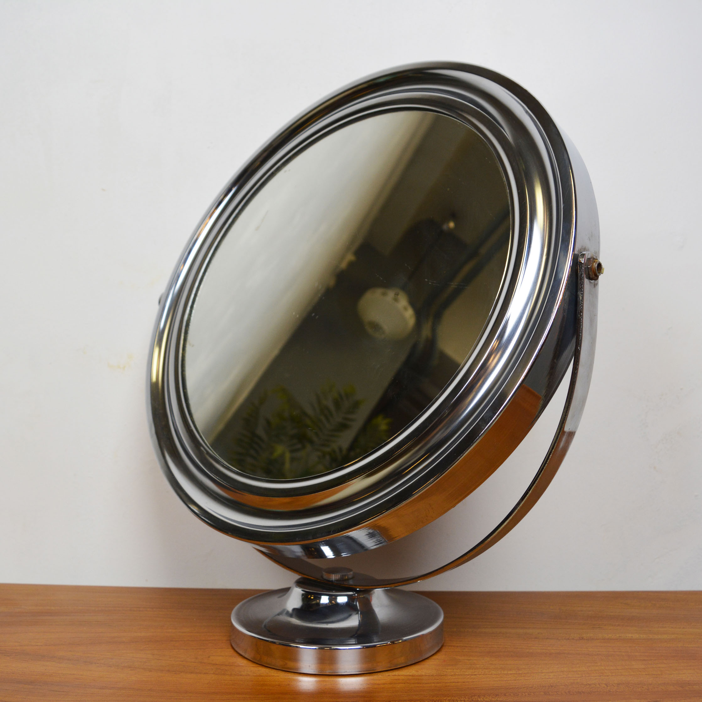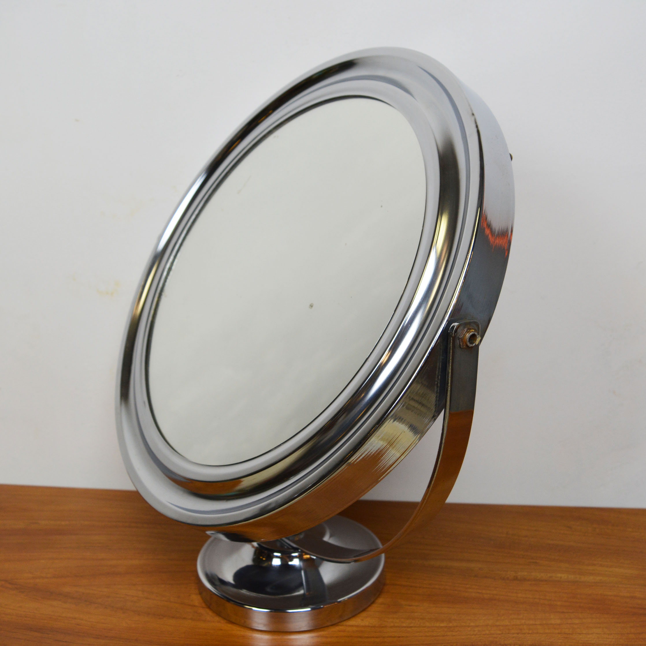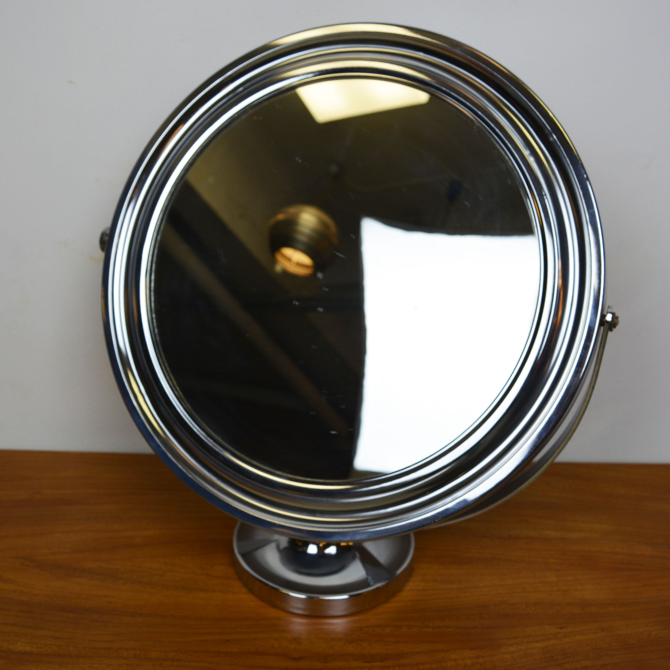 Two-sided illuminates beauty mirror by Allibert. Rotates to switch between the regular and magnifying mirrors.
