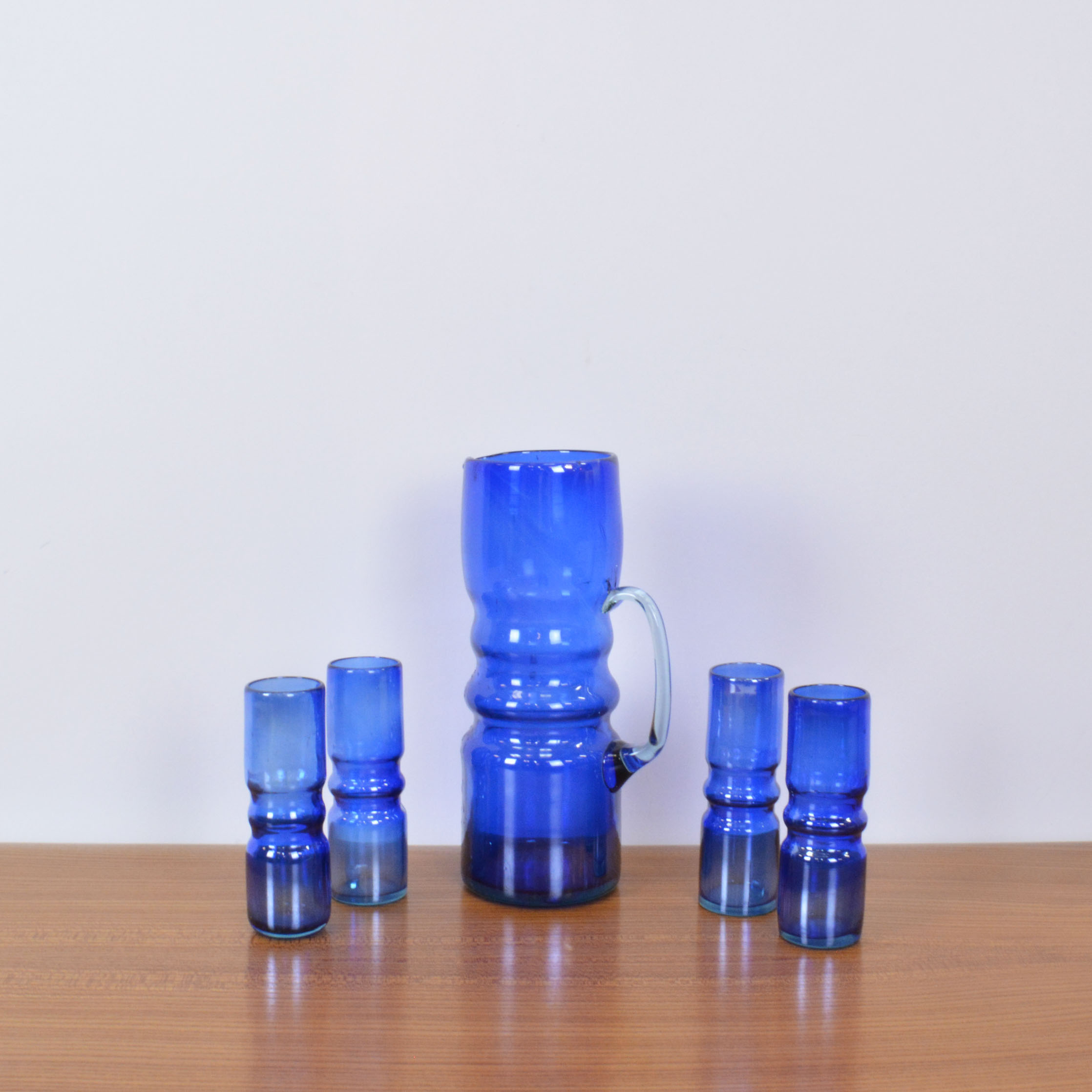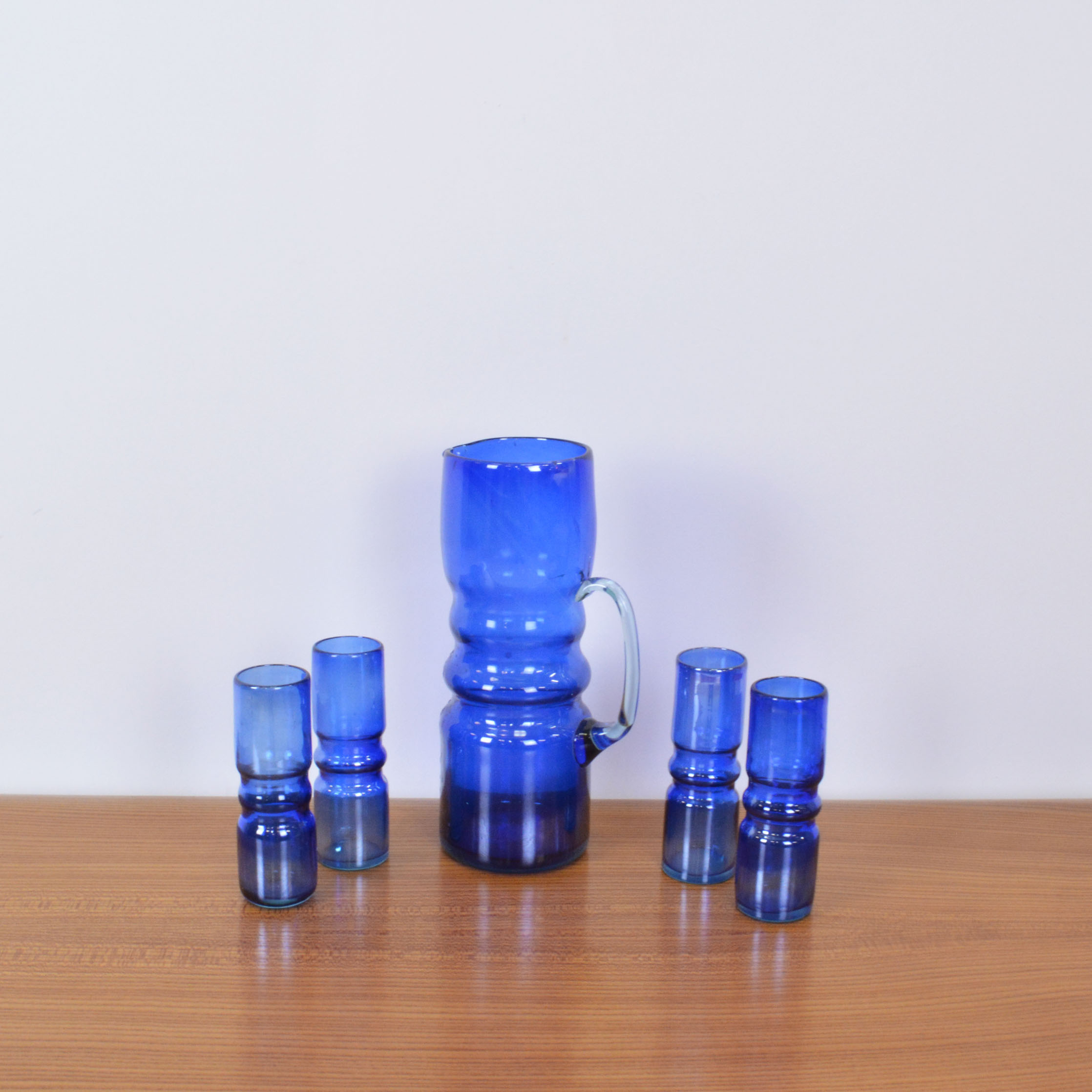 Transparent Blue Glass Carafe & 4 Glasses -Rent Only-