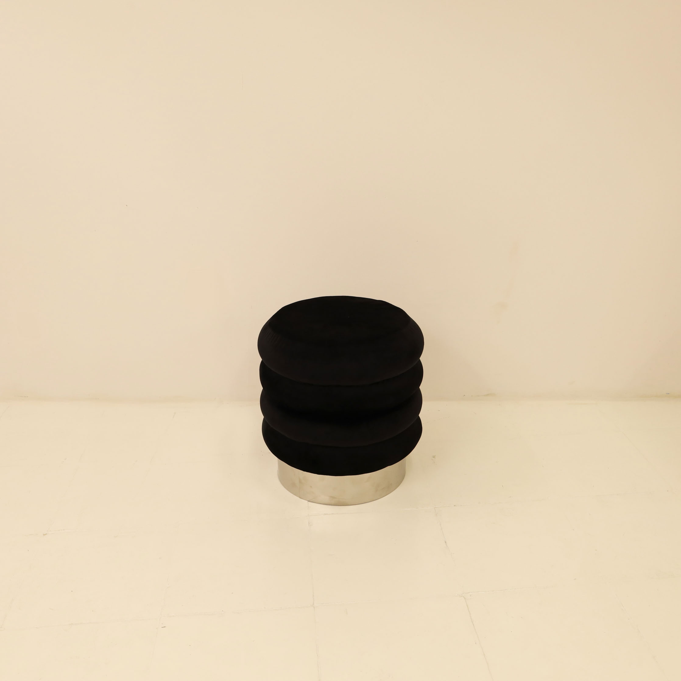 €145.00€85.00Modern stool, featuring a square seat in black velour fabric set upon a bamboo-shaped metallic frame.