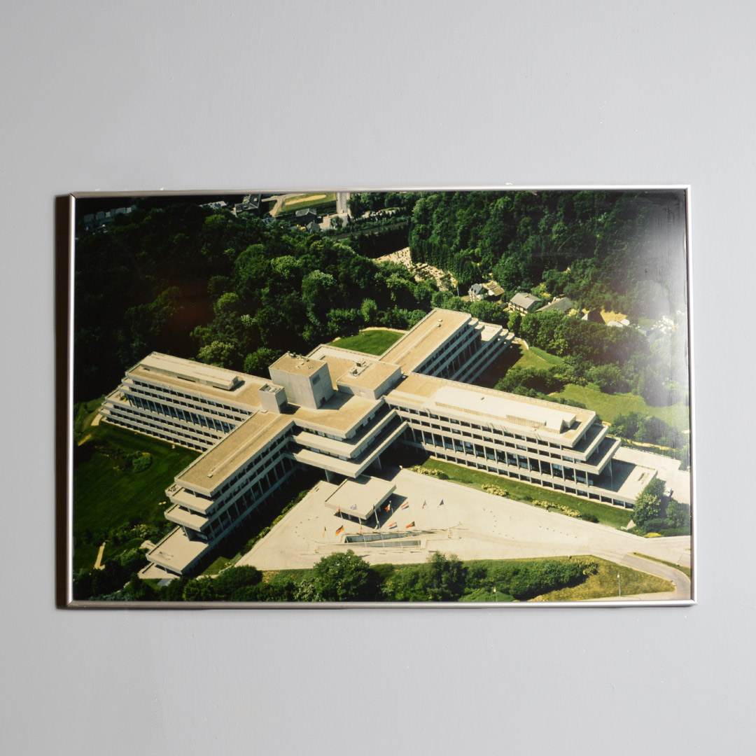 Vintage building photography poster. Light wear consistent with age and use, Patina consistent with age and use.