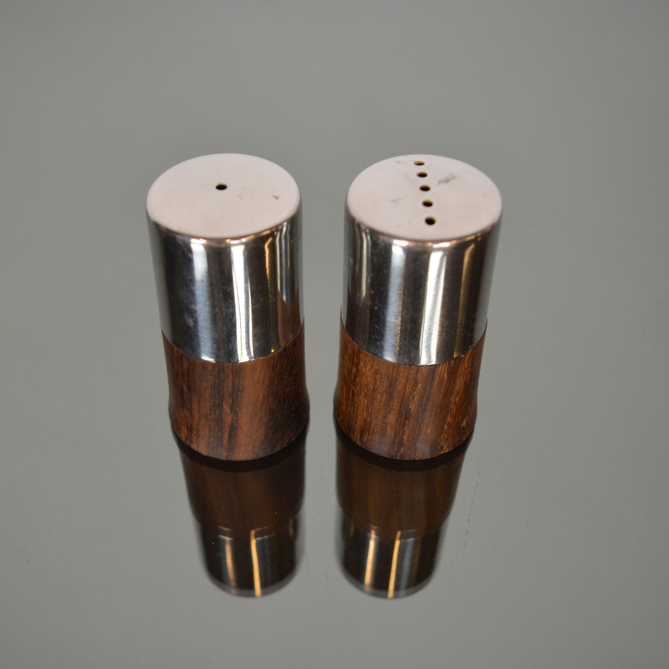 Wooden set of mid-century salt and pepper.